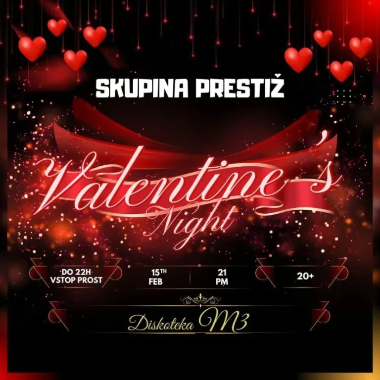 V Diskoteki M3 Beltinci bo ob 21. uri »Valentine’s Night« s skupino Prestiž, ki bo poskrbela za nepozaben večer z največjimi jugo hiti.