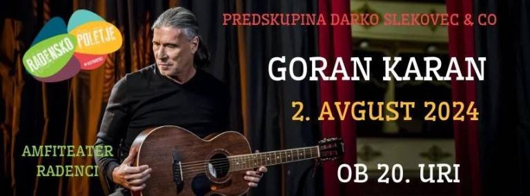 V Radence pa prihaja Goran Karan. Ob 20. uri bo nastopil v Amfiteatru Radenci v sklopu radenskega poletja.