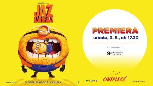 V kinu Cinplexx Murska Sobota premiera animiranega filma Jaz, baraba 4 ob 17.30. V Domu penine v Gornji Radgoni pa Večer penin in koktejllov ob 18. uri.