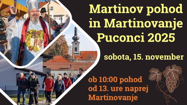 Ob 10. uri bo v Puconcih dvorišče pred občinsko stavbo prizorišče 27. Martinovega pohoda, s katerim se bo začelo martinovanje v občini Puconci, ki bo vključevalo pokušine, druženje in lokalno ponudbo.