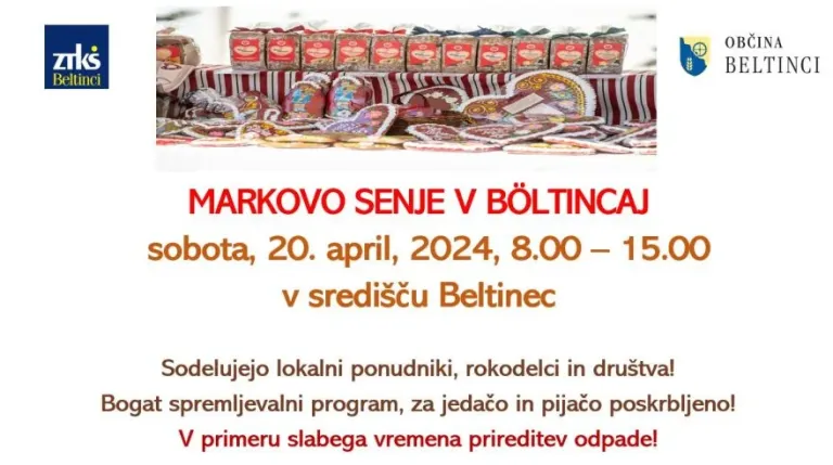 V soboto, 20. aprila, bo v Beltincih ob 8. uri tradicionalni Markov sejem – Markovo senje.