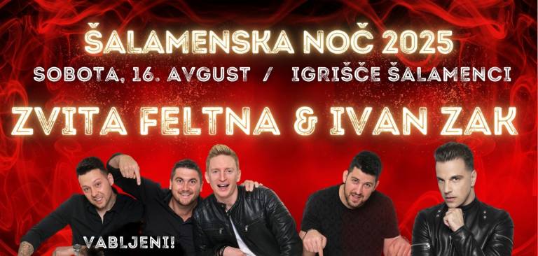 Prav tako ob 20. uri bo Šalamenska noč 2025 na igrišču KMN Šalamenci z vrhunsko glasbo pod milim nebom.