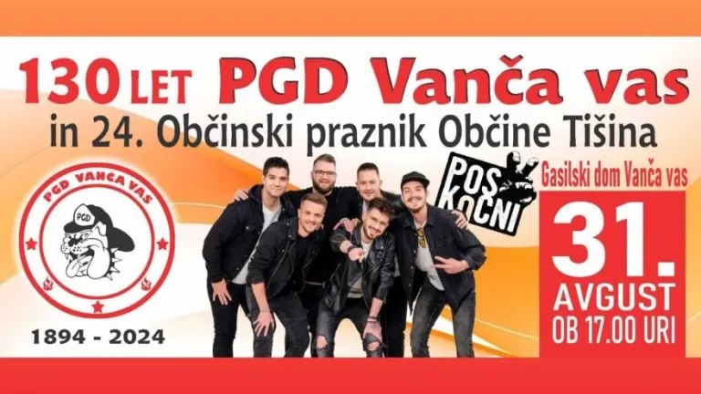 130 let delovanja prostovoljnega gasilskega društva in 24. občinski praznik občine Tišina pa bodo obeležili tudi v Vanči vasi. Za zabavo bodo poskrbeli Poskočni muzikanti.