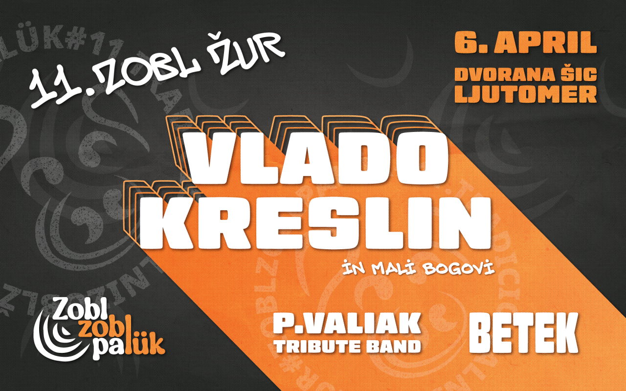 Ob 20. uri se začenja 11. Zobl žur v Dvorani ŠIC Ljutomer. Nastopili bodo Vlado Kreslin in Mali Bogovi, Betek in P. Valiak Tribute Band.