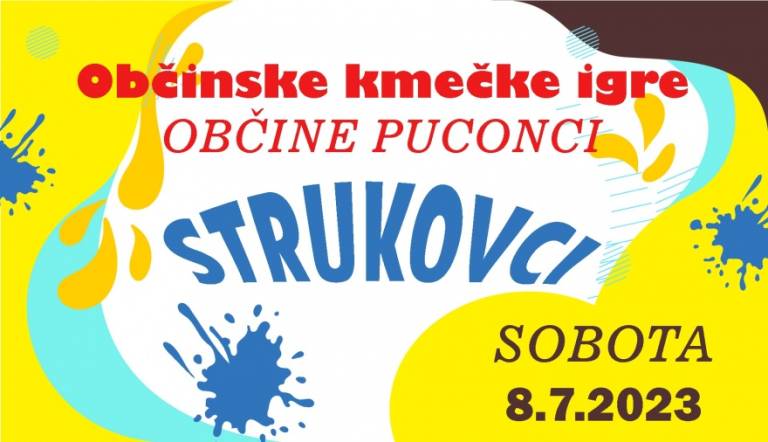 Klub malega nogometa Strukovci vabi na Občinske kmečke igre občine Puconci z dobro hrano, pijačo, bogatim srečelovom in obilico odlične glasbe. Otroci se bodo zabavali na napihljivem igralu. Ob 13. uri na nogometnem igrišču v Strukovcih.