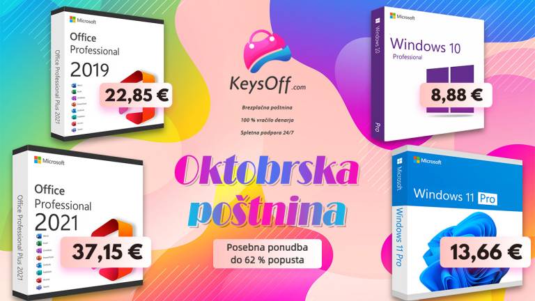 Paket programov Microsoft Office in operacijski sistem Windows ponujata praktično rešitev za vse, ki hočete postati boljši. Od danes vam Keysoff v oktobrski razprodaji ponuja posebno, časovno omejeno ponudbo.