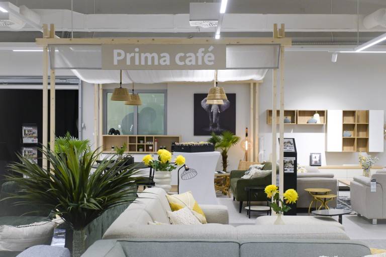 Po nakupu pohištva ali medtem ko se odločate med privlačnimi možnostmi se lahko za trenutek sprostite v udobnem Prima caféju.