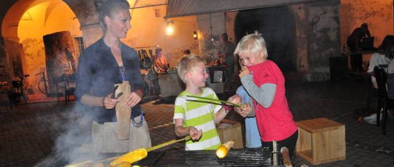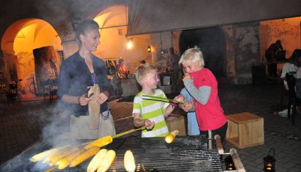 Ti so postregli s palačinkami iz domače moke in domače marmelade, domačimi pereci, sirovimi krapci, ponudba pa se tukaj ne zaključi. Po grajskem dvorišču, kjer je za glasbeni vložek skrbel DJ Vuk, pa se je vil tudi vonj pečene koruze, ki si so si jo »za đabe« lahko obiskovalci sami spekli.