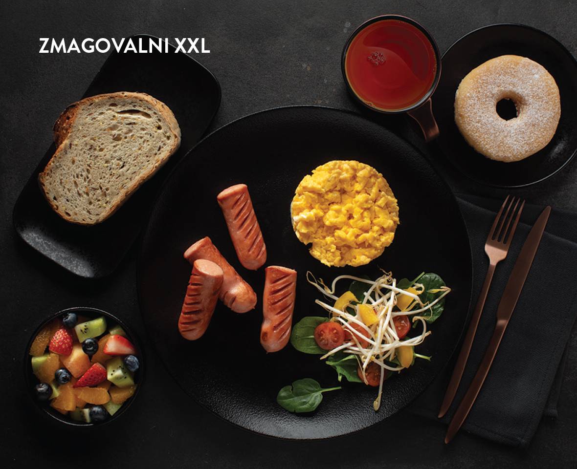 Z »Narezkom in pol« ter veganskim ali klasičnim »XXL zajtrkom« pa bo prav vsak pripravljen na najzahtevnejše dnevne izzive.