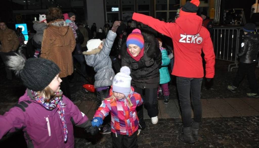 Najmlajši so včeraj v spremstvu staršev, babic in dedkov, kljub nizkim temperaturam veselo silvestrovali v mestnem središču. Za zabavo s silvestrskim vzdušjem so poskrbeli plesalci Plese šole Zeko.