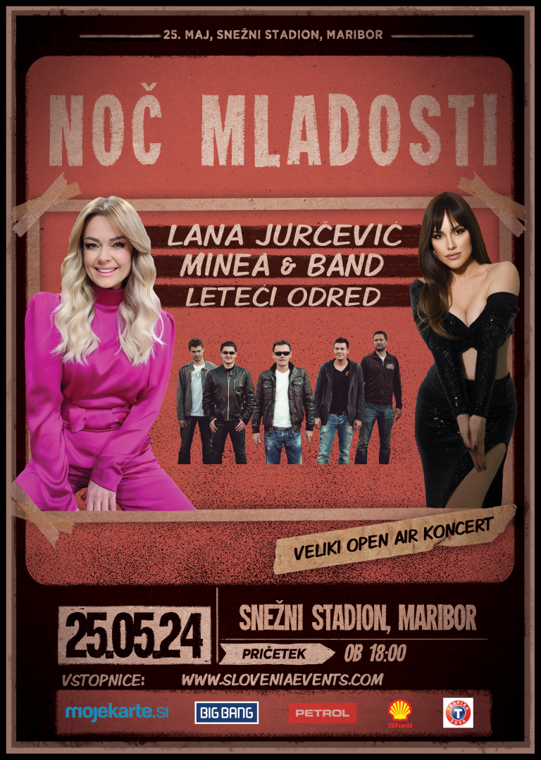 S svojimi večnimi hiti vas bodo v celovečernem programu navduševali kar trije vrhunski izvajalci: Minea, Lana Jurčević in Leteći odred.