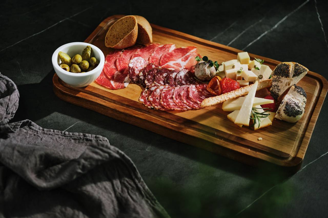 Med uživanjem v najlepšem razgledu na blejski pejsaž prelistajte našo vinsko karto in si privoščite »dilco« Bled local selection, na kateri so združeni prvovrstni lokalni produkti, kot so Domače gorenjske mesnine, domači siri in kisla zelenjava.