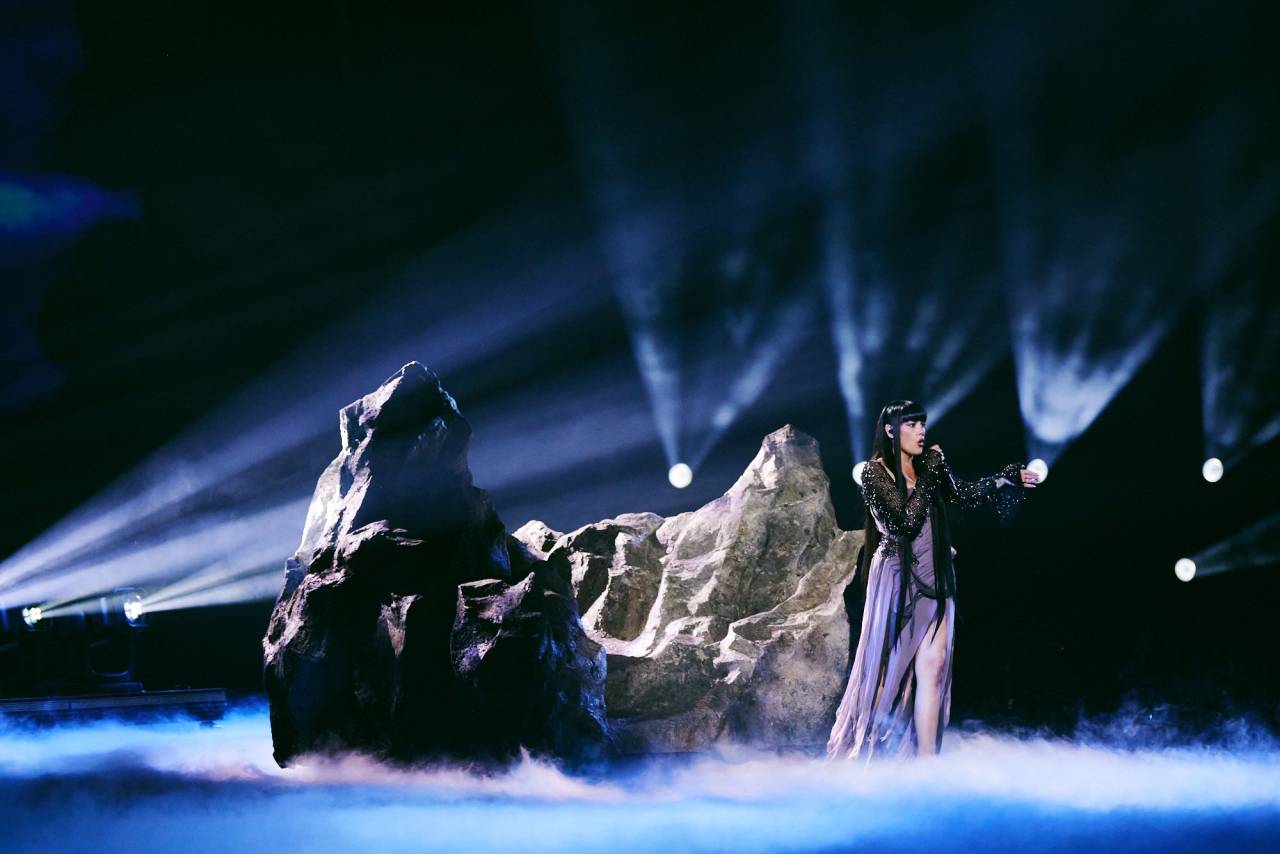 Oblečena je bila v prosojno črno opravo, na odru se ji je pridružilo pet plesalcev, ki so izvedli zapleten ples prepletanja teles. Dramatičnost se je še posebej stopnjevala na koncu, ko je Raiven zapela v visokih tonih.