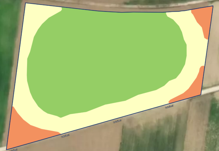 Spodnja slika prikazuje primer zajema njivske površine za izdelavo mape /načrta za precizno gnojenje na podlagi NDVI (ang. normalized difference vegetation index) indeksa, s katerim se prepoznavana različna stanja rastlin, katera so v nadaljevanju ciljno gnojena točno toliko, kot je to na posameznem delu potrebno.