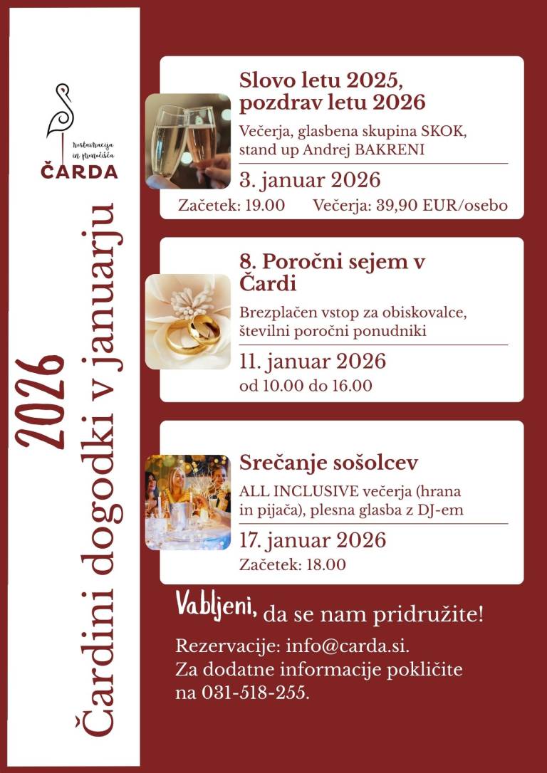 Restavracija in prenočišča ČARDA v Martjancih začenja januar 2026 praznično, romantično in družabno – s tremi posebnimi dogodki, namenjenimi vsem, ki želijo leto začeti v dobri družbi.
