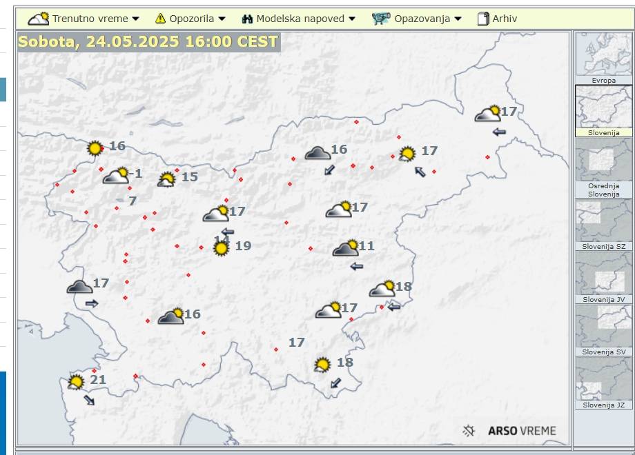 Najvišje dnevne temperature bodo od 14 do 18, na Primorskem ob šibki burji do 21 stopinj Celzija, je zapisano na spletnih straneh Agencije Republike Slovenije za okolje.