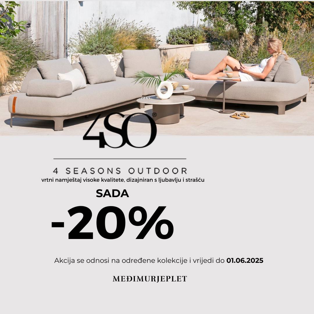 Le od danes pa vse do 1. junija velja ekskluzivna akcija: 20 odstotkov popusta na izbrane kolekcije prestižne znamke 4 Seasons Outdoor.