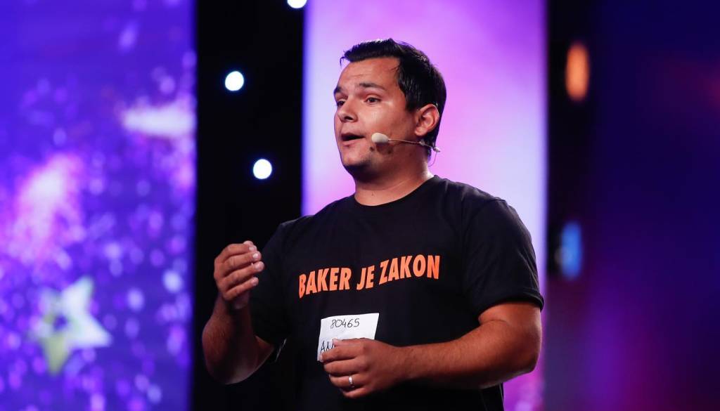 Tako se je poimenoval kar z umetniškim imenom Andrej Bakreni. Čeprav je ciljal na zlati gumb, si je na koncu prislužil trikrat 'ja', saj kot mu je povedala Marjetka, zanjo ni bil dovolj zabaven, a se mu je kljub temu uspelo prebiti v naslednji krog tekmovanja.