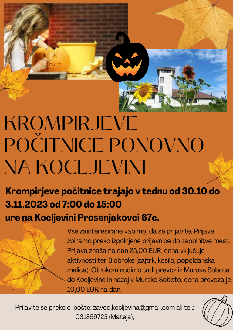 Otroci bodo lahko sodelovali v ustvarjalnih delavnicah na temo noči čarovnic, spoznavali nove prijatelje skozi družabne igre, pridobivali kulinarične spretnosti, spoznavali različne domače živali, pekli kostanje in ustvarjali nepozabne spomine.