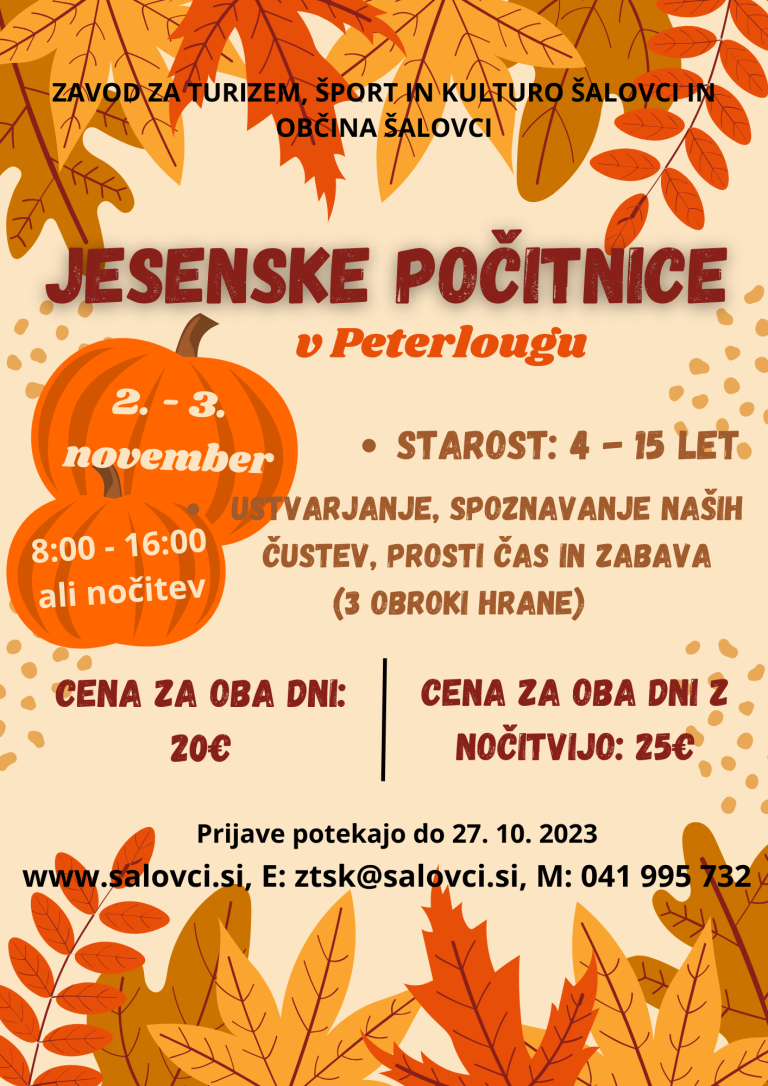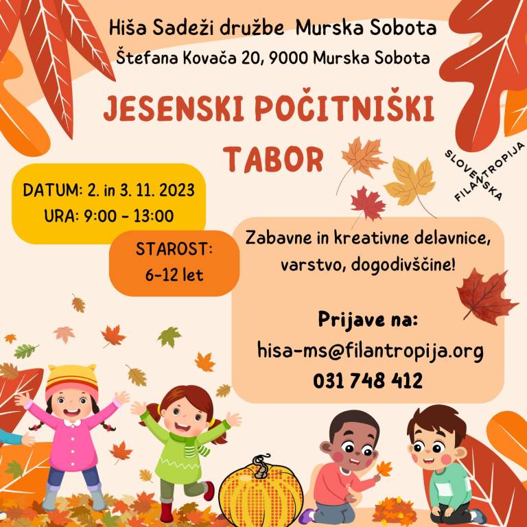 Hiša Sadeži družbe v Murski Soboti prireja jesenski počitniški tabor.