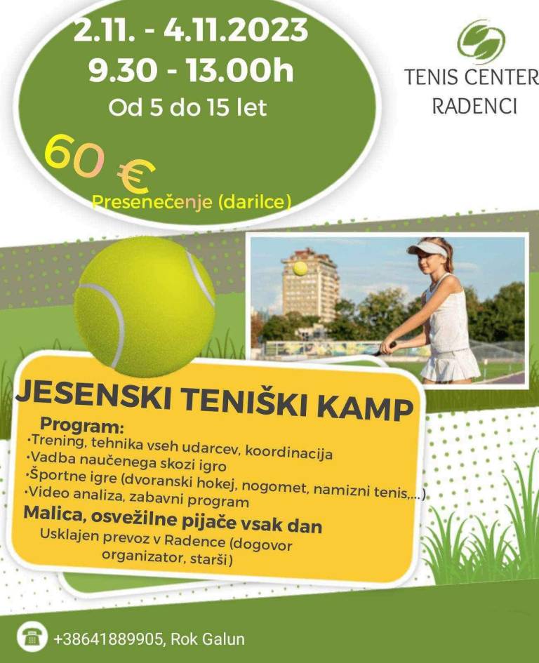 Tenis center Radenci organizira jesenski teniški kamp za otroke stare od 5 do 15 let.