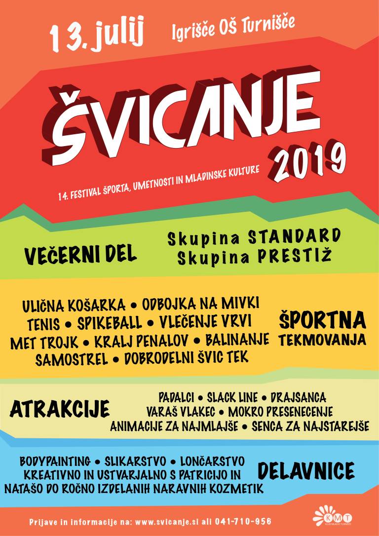 V soboto, 13. julija 2019, bo od 8.00 ure naprej na igrišču pri OŠ Turnišče potekala športno - rekreativna prireditev Švicanje 2019, ki velja za pravi festival športa, ustvarjalnosti in mladinske kulture.