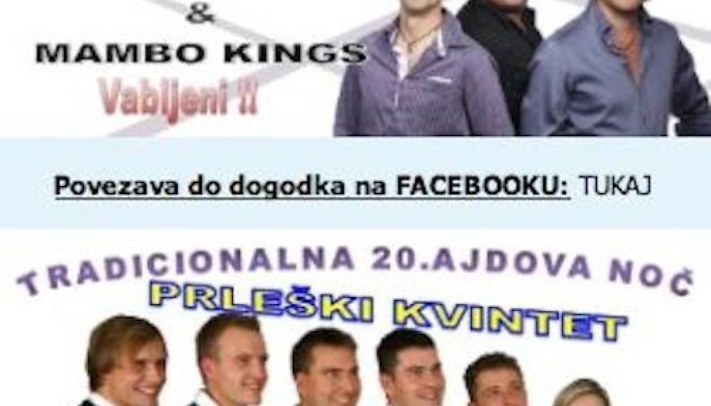 Dvajseta Ajdova noč, ki bo potekala prihajajoči vikend v ŠRC Odranci, bo postregla s pestrim dogajanjem. V petek, v Odrance prihajata dva glasbena gosta, ki sta v Sloveniji znana kot »kralja veselic in zabav,« Tanja Žagar s skupino Avantura in skupina Mambo Kings.