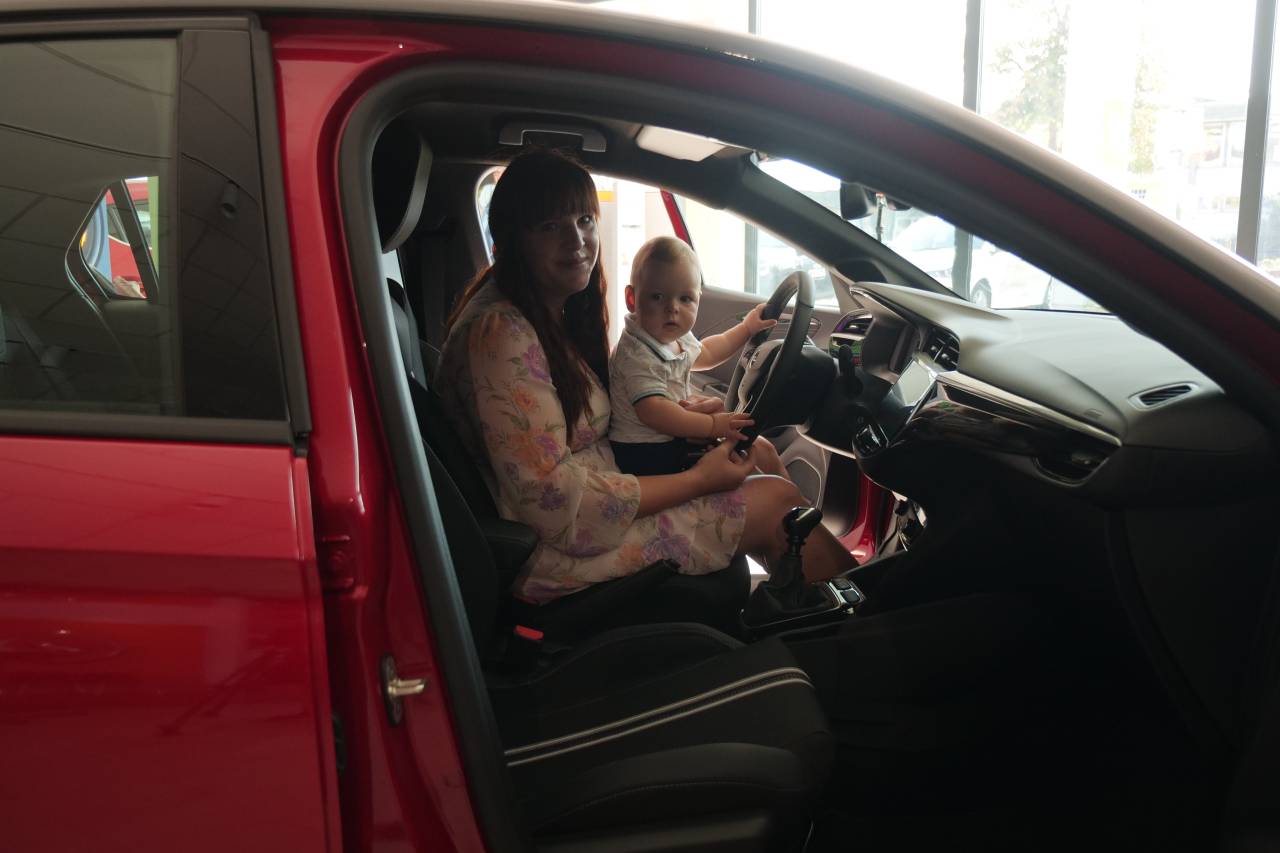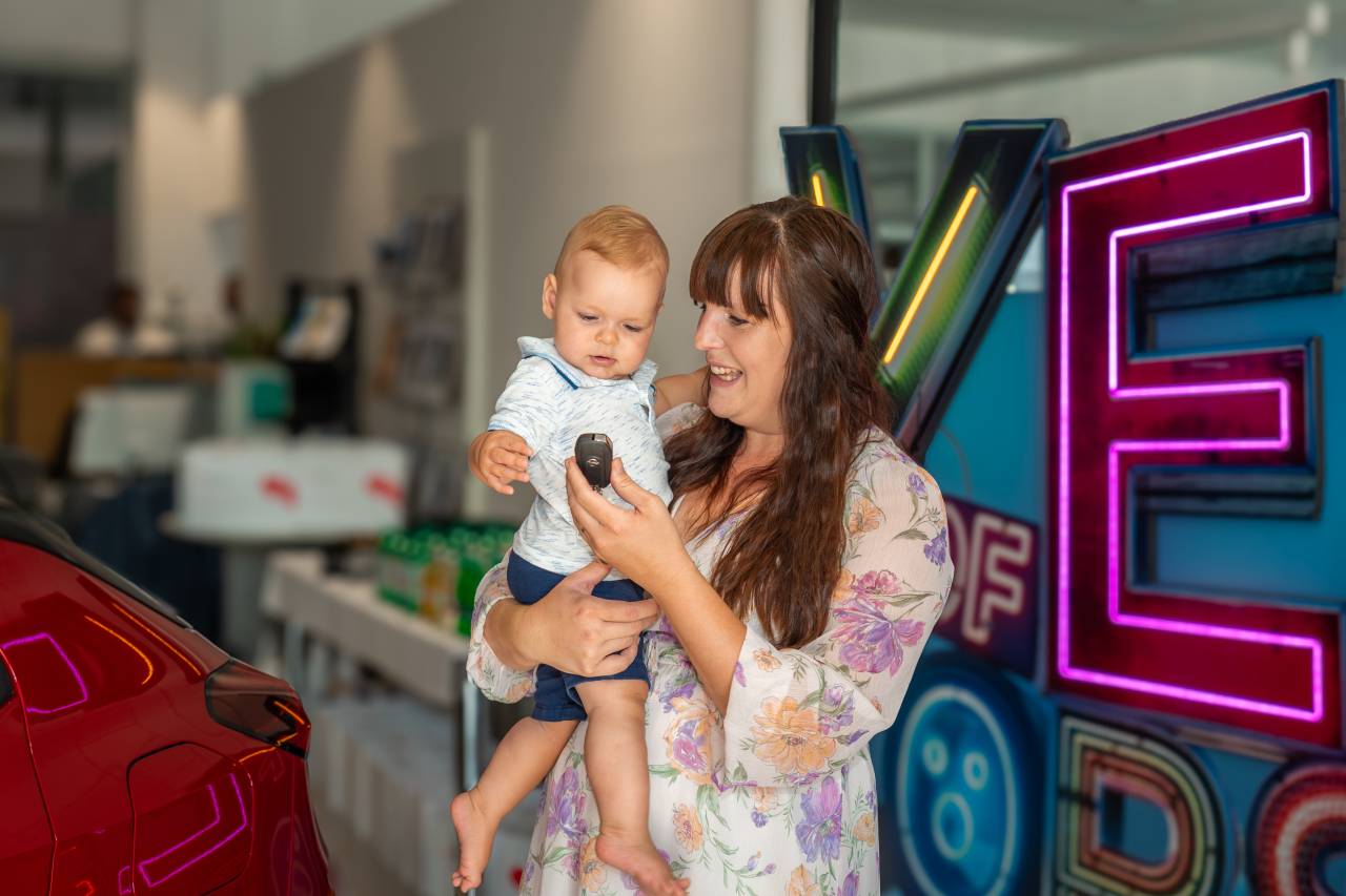 Glavne nagrade se je razveselila Maja Čoh iz Celja, ki je avto prevzela v družbi osemmesečnega sinčka Timija.