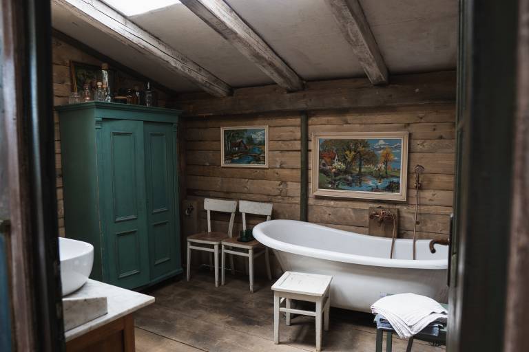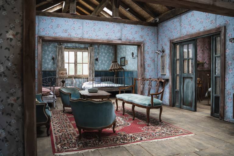 V notranjosti hiše se nahaja spalnica glave družine, levo in desno spalno krilo, shramba ter kopalnica, ki pa letos ni tako razkošna. Tekmovalci namreč na začetku ne bodo imeli tekoče vode, niti stranišča.