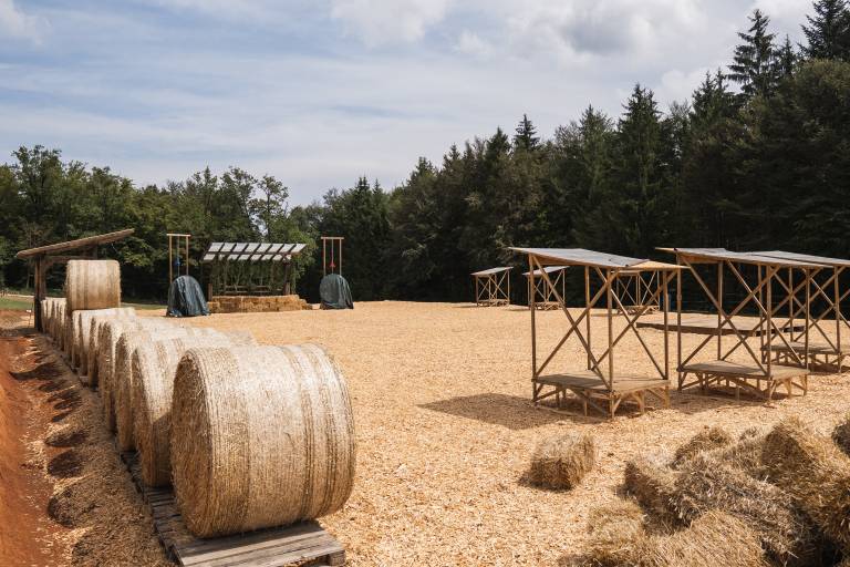 »Kot vsako leto do zdaj, smo vse elemente ter objekte Kmetije postavili v rekordnem času. Za inštalacijo elektrike in vode, urejanje terena, gradnjo samih objektov in scenografije smo potrebovali dva meseca, pri gradnji pa je sodelovalo približno 20 ljudi,« je povedala Marija Kuljanin, producentka produkcijske hiše Videostroj.