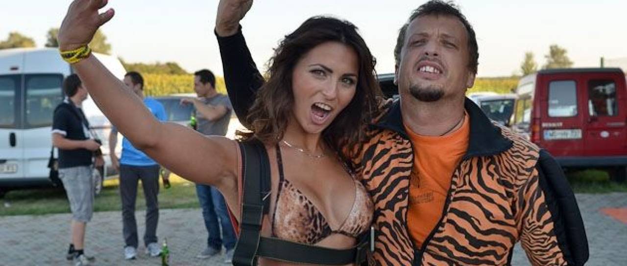 Suzana Zeković je pomurskega skakalca s padalom, Jožeta Veldina, na štiritisočem skoku pospremila kar v bikinkah.