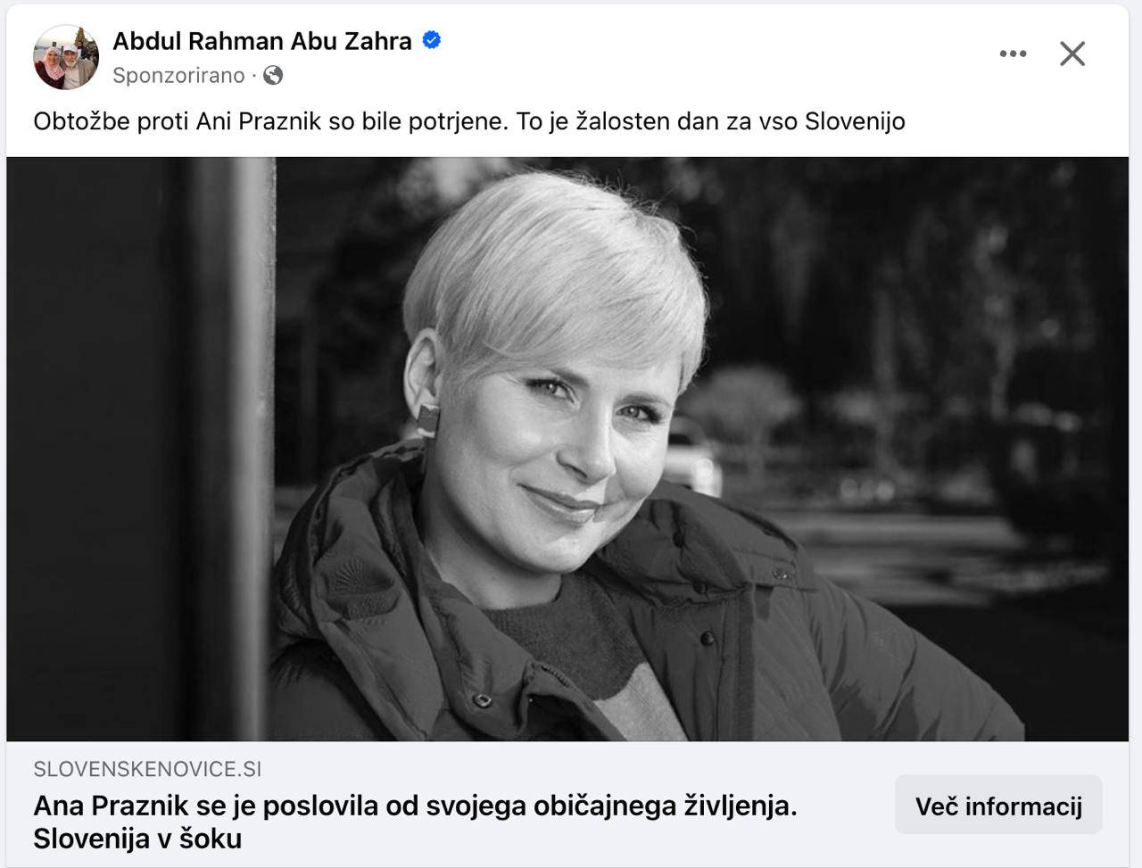 »To se mi zdaj dogaja že drugič. Prvič se je zgodilo pred enim letom in takrat je policija rekla, da so tu nemočni, saj je zloraba imena izvirala iz Islandije in kaznivega dejanja v Sloveniji zaradi tega ne morejo preganjati. To je generirano besedilo, v njem samo spreminjajo imena,« je za Žurnal24 pojasnila Ana Praznik.