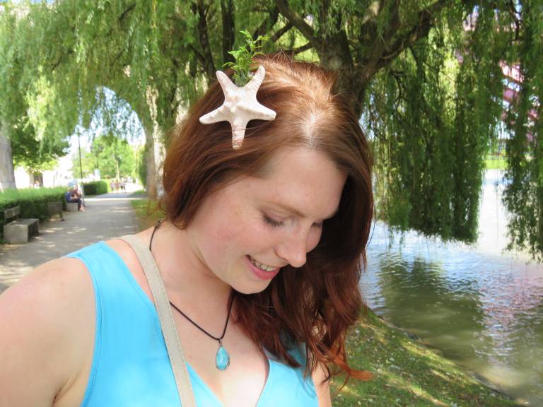 Barbara Petek je pojasnila, kaj še sodi k opravi morske deklice: »Modrčki so velikokrat okrašeni s školjkami ali biseri. Morske deklice včasih nosijo tudi kakšne kronice, morske zvezde, bleščice in podobno. Bleščicam na plastični osnovi se sicer izogibam, so pa na voljo tudi že biorazgradljive bleščice.«
