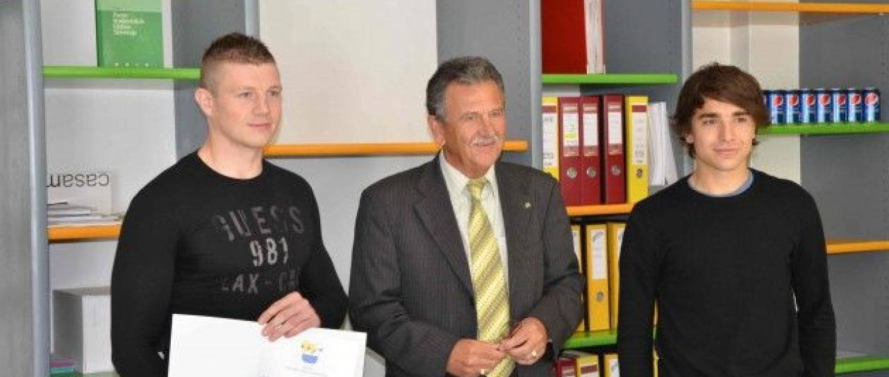 Župan Anton Kampuš je predsedniku kluba Klinka Marku Filipiču podaril izvode Monografije Občine Gornja Radgona, Dejanu Vajsu pa je izročil priznanje za odlične športne dosežke v kickboxingu.