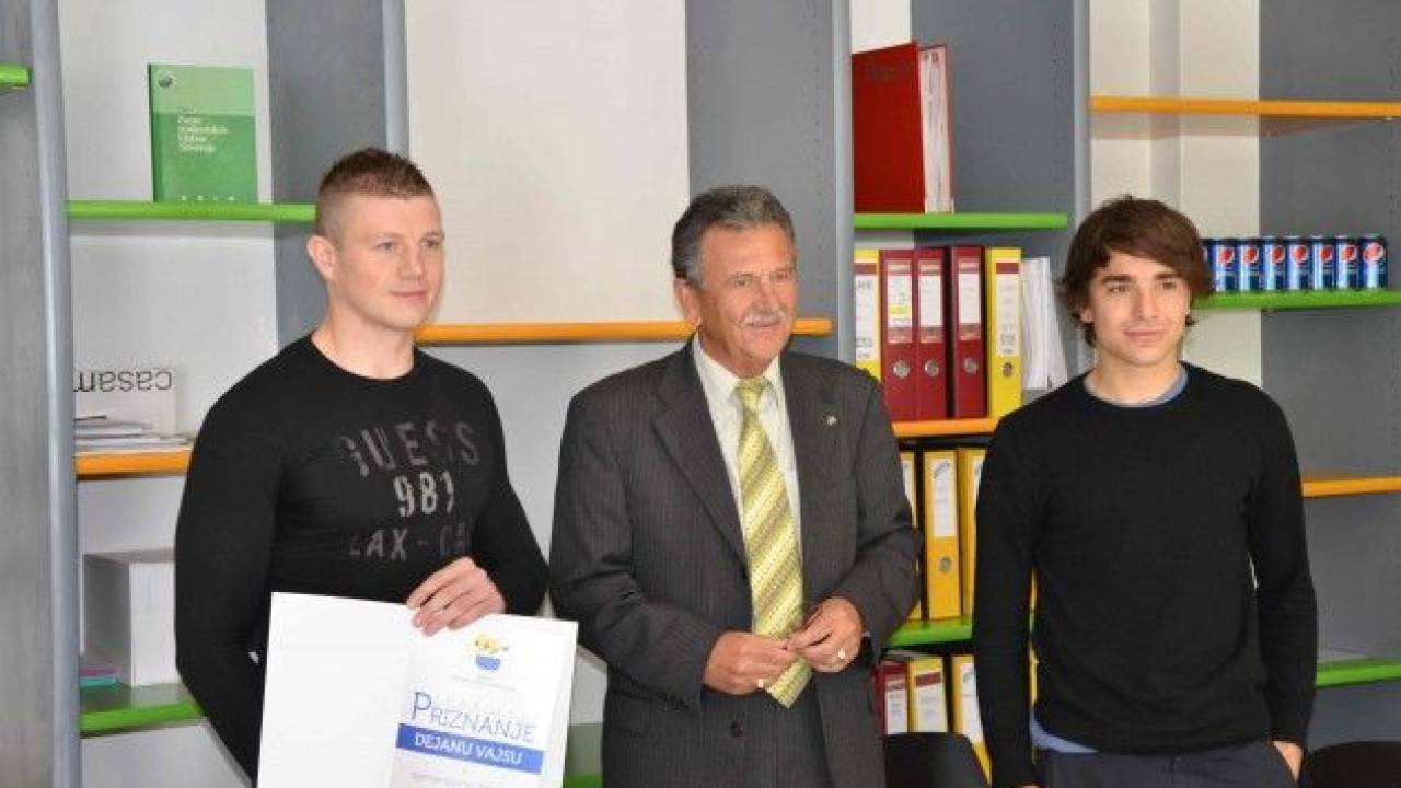Župan Anton Kampuš je danes sprejel mladega Dejana Vajsa, ki je ob koncu prejšnjega tedna v Brežicah postal državni prvak v kickboxingu (Kick-light do 89 kg).