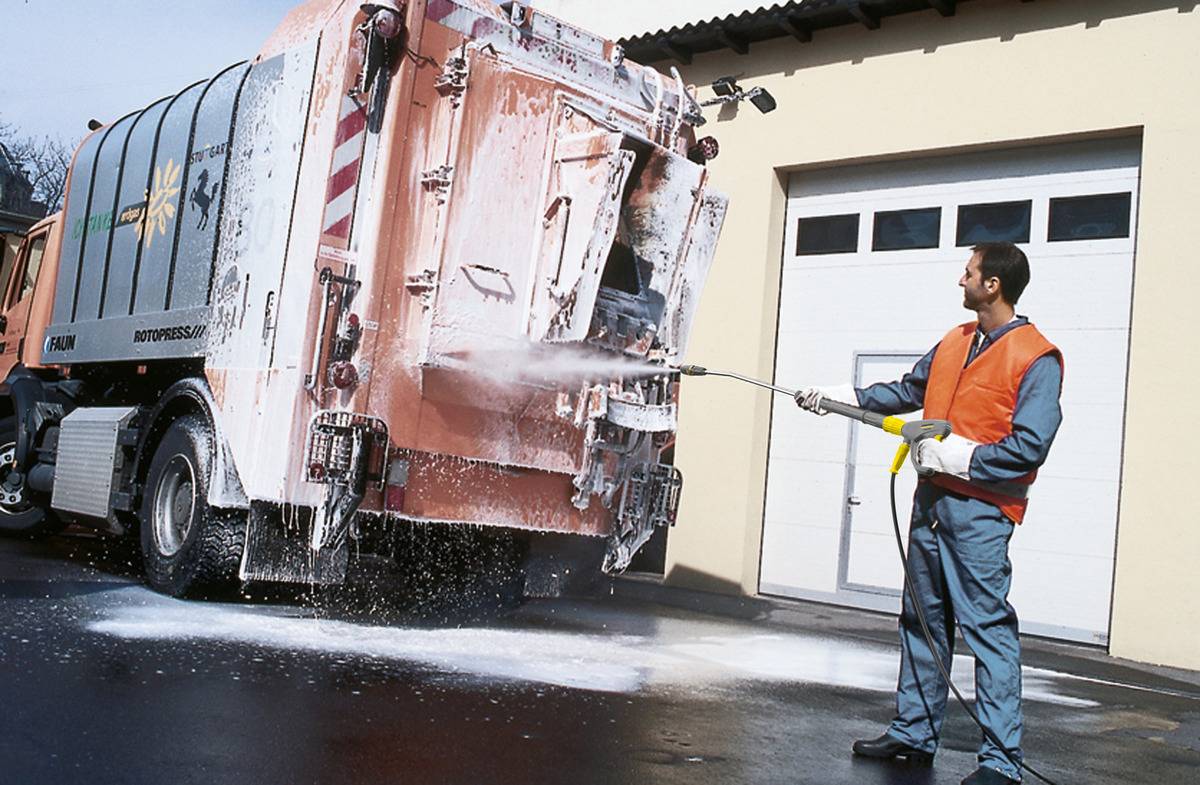 Hladna voda je dovolj za odstranjevanje večine vrst umazanije, kot so blato, pesek, prah, odpadni materiali ali ostanki z gradbišč in strojev.