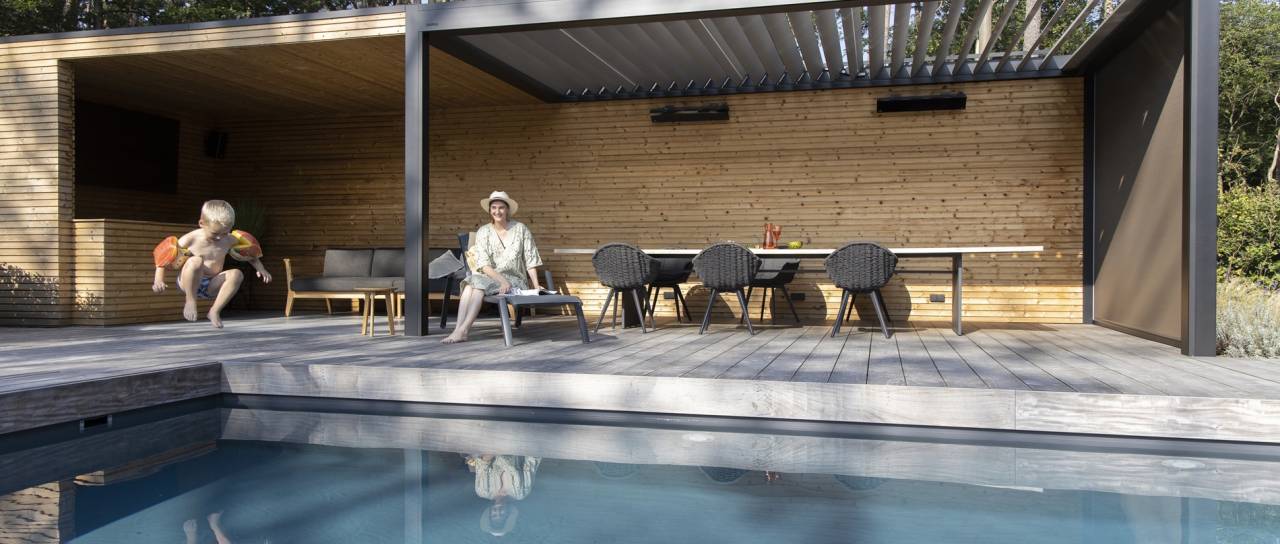 Bioklimatske pergole, katere najdete v ponudbi podjetja Genial, se lahko preobrazijo v hišico ob bazenu vaših sanj. Vrtljive lamele zagotavljajo pravo senco, ZIP screen roloji vas ščitijo pred vetrom, Bluetooth zvočniki pa ustvarjajo popolno poletno vzdušje z vašimi najljubšimi melodijami.