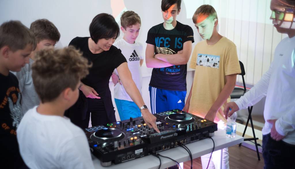 Otroci na DJ šoli spoznajo glasbeno teorijo, se podrobno spoznajo z delom DJ-ja in prejmejo nasvete za pripravo glasbenega miksa ter izvedbo nepozabnega nastopa.
