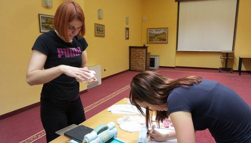 Izdelovanje škatlic v Termah Banovci.