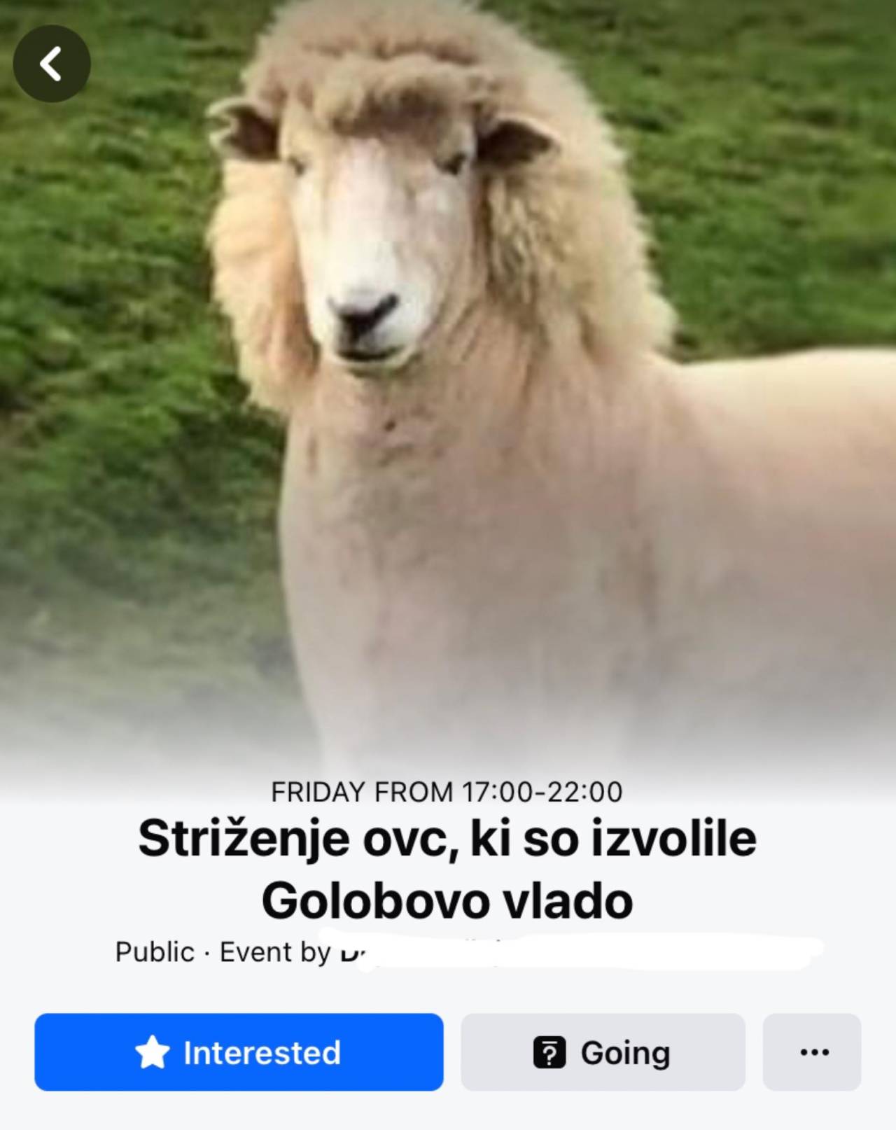 V opisu dogodka Striženje ovc, ki so izvolile Golobovo vlado, za katerega se zanima 2300 ljudi, lahko preberemo: