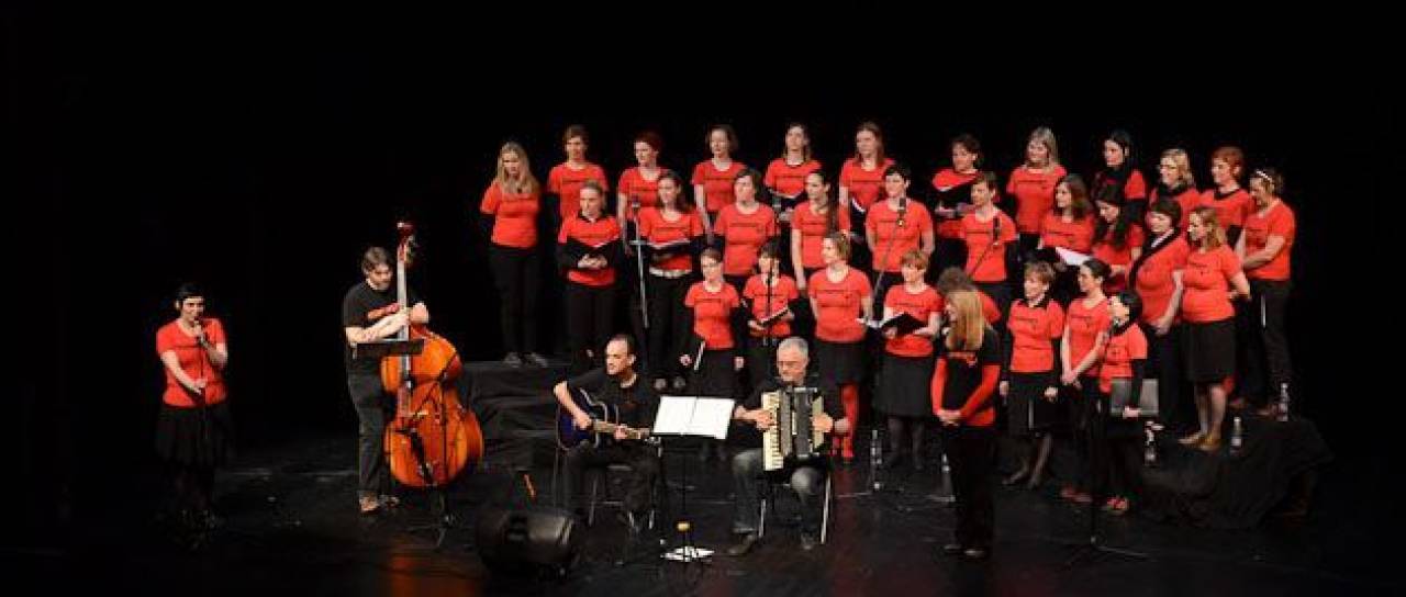 Ob skorajšnji obletnici osvoboditve Prekmurja je v gledališki in koncertni dvorani Park nastopil ženski pevski zbor Kombinat.