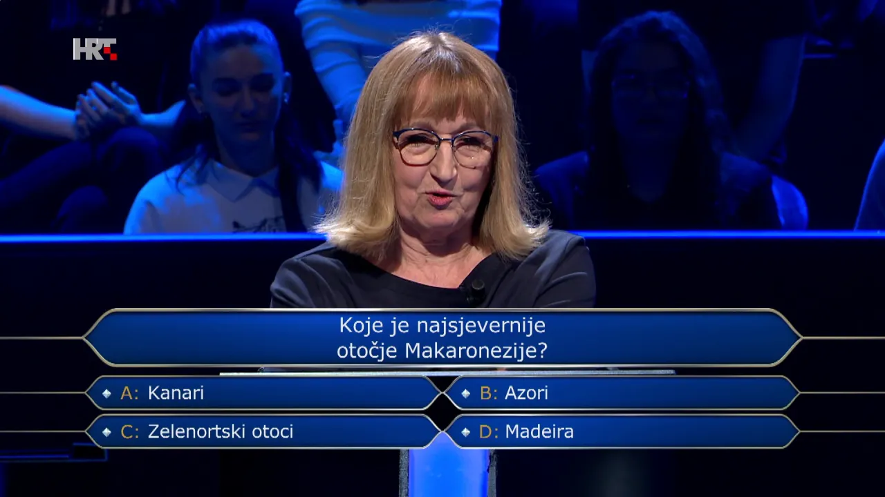 Pri 13. vprašanju, ki se v kvizu ni pojavilo že zelo dolgo, je Ankica morala ponuditi pravilen odgovor na vprašanje: Kateri je najsevernejši otok Makaronezije? S pravilnim odgovorom bi si prislužila 150.000 evrov.