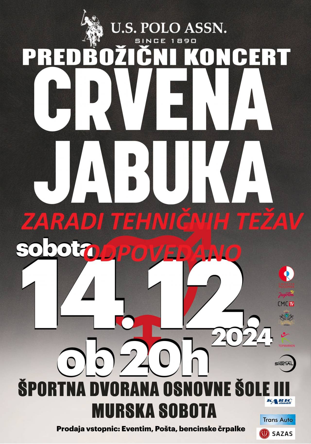 Koncert skupine Crvena Jabuka, ki bi moral potekati 14. decembra 2024, odpovedan zaradi tehničnih težav.