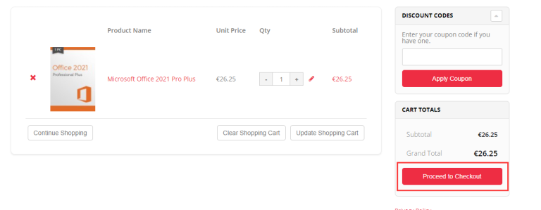 1. Dodajte izdelek v nakupovalno košarico, po potrditvi kliknite »Proceed to Checkout«.