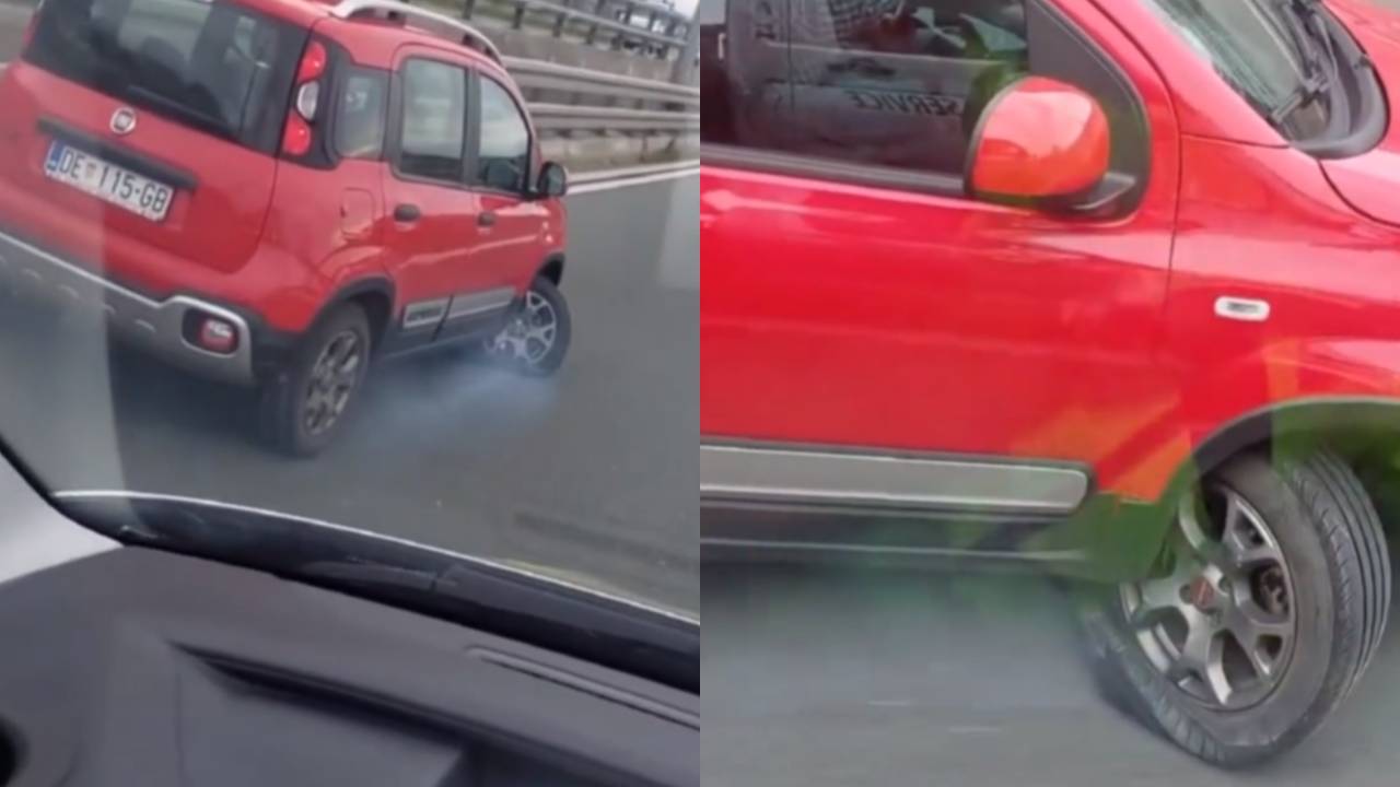 Po družbenih omrežjih je namreč zaokrožil videoposnetek avtomobila, ki vozi po levem prehitevalnem pasu z močno poškodovanim prednjim desnim kolesom.