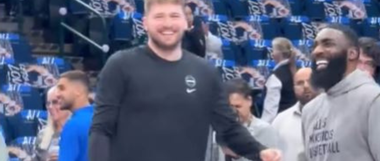 Slovenski košarkarski zvezdnik Luka Dončić je sproščeno metal žogo na koš, v ozadju pa se je slišala znana pesem hrvaške skupine E.T. z naslovom Prazan stan (prazno stanovanje).