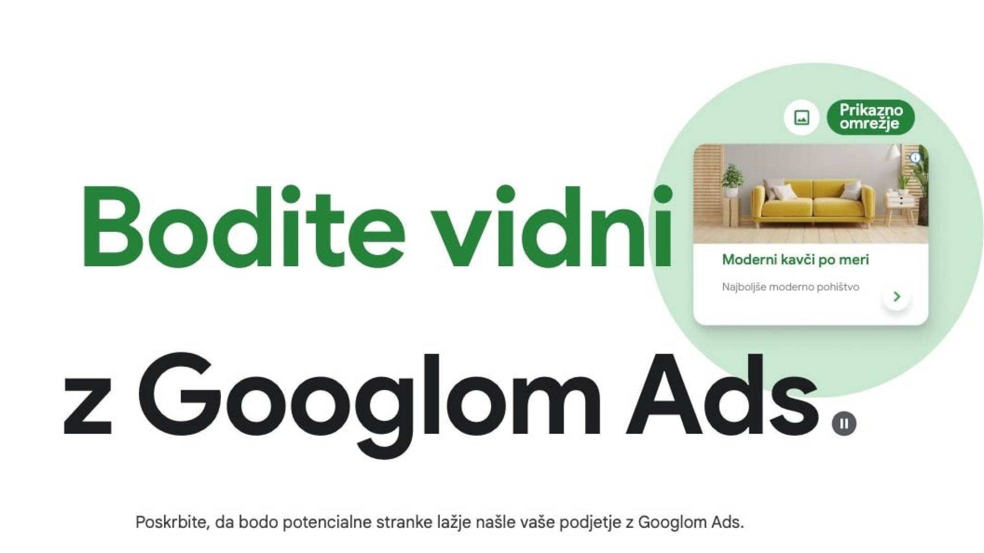 Google oglaševanje omogoča prikazovanje oglasa med prvimi zadetki Googla, pri čemer stranka za oglas plača šele ob kliku nanj. Trenutno je to eden izmed najbolj uspešnih načinov spletnega oglaševanja, kajti omogoča, da se vaši oglasi prikažejo ravno tistim ljudem, ki iščejo vaš izdelek ali storitev.