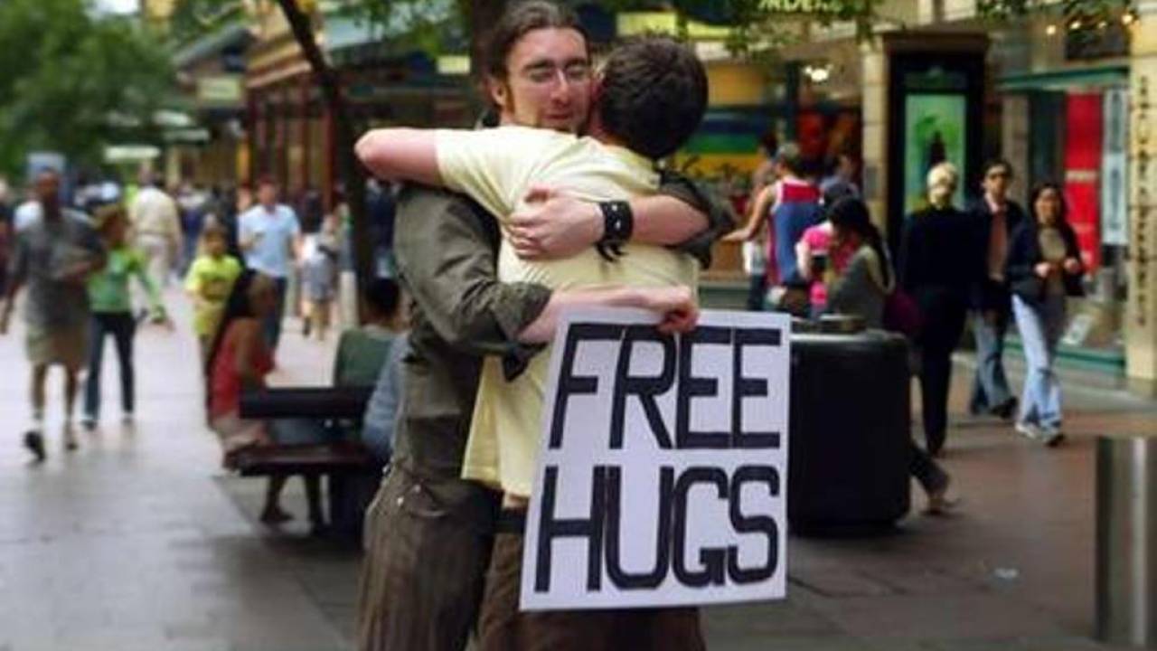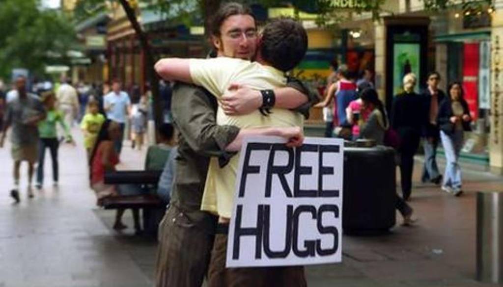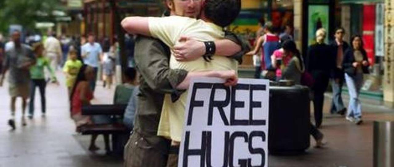 Ob tej priložnosti se mu je porodila tudi ideja, zato je vzel iz potovalke papir in flomaster ter na obe strani papirja napisal FREE HUGS (brezplačen objem). Prvih 15 minut so vsi hodili mimo njega, kod da je prozoren, nato ga je opazila prva oseba, mu povedala svojo zgodbo o preminuli hčerki in hišnem ljubljenčku in kako se je takrat počutila najbolj samo in osamljeno ter je potrebovala OBJEM, takrat je Juan gospo objel in to je bil prvi objem, ki je bil podeljen v okviru njegove kampanje.