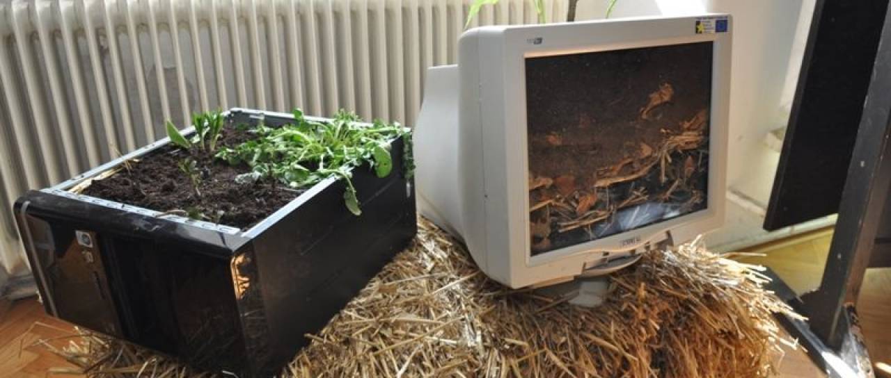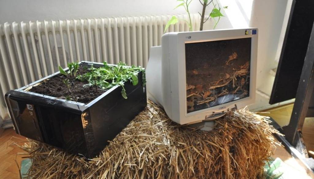 Stari neuporaben in odslužen računalniški komplet, ki lahko v vsakdanjem življenju sodobnega človeka predstavlja kvečjemu navlako in odpadek, služi za zeleno zasaditev, ki že krasi prostore Mladinskega, informativnega in kulturnega kluba.