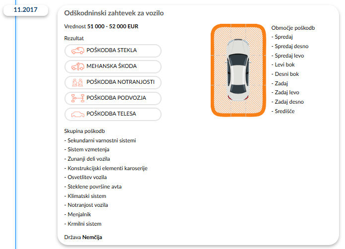 Obseg informacij je odvisen od razpoložljivosti podatkov za konkretno vozilo in je uporabniku viden še pred nakupom poročila, da lahko sam presodi, ali bo našel iskane podatke.
